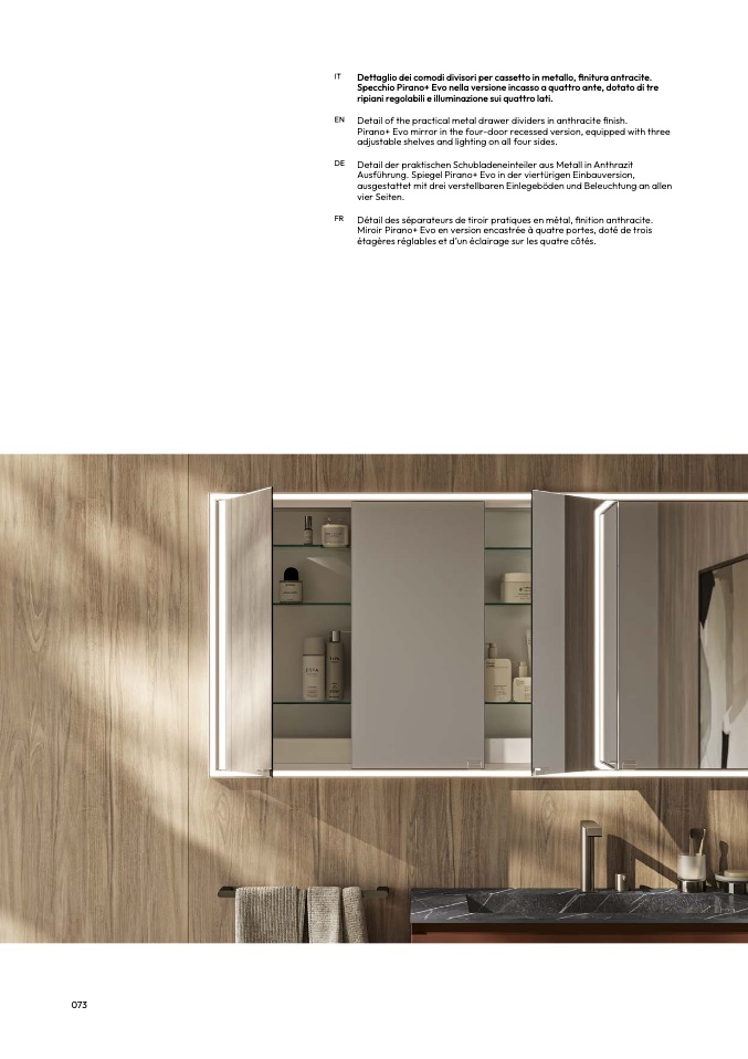 Miroir Pirano+ Evo en version encastrée à quatre portes, doté de trois