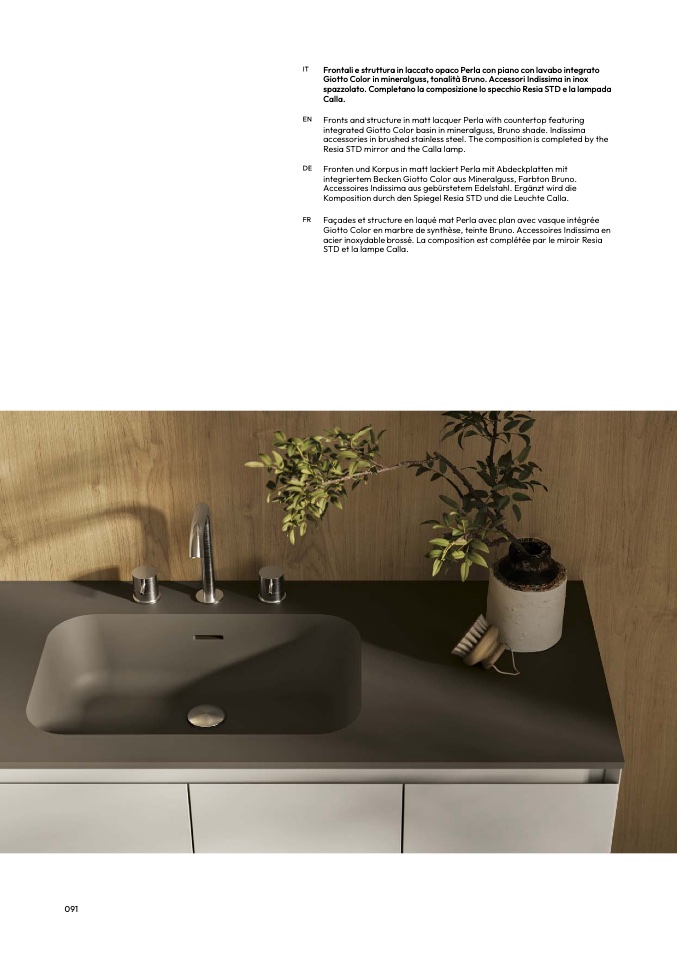Giotto Color in mineralguss, tonalità Bruno. Accessori Indissima in ino