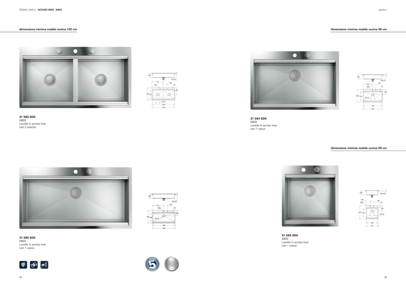 GROHE LAVELLI ACCIAIO INOX K800