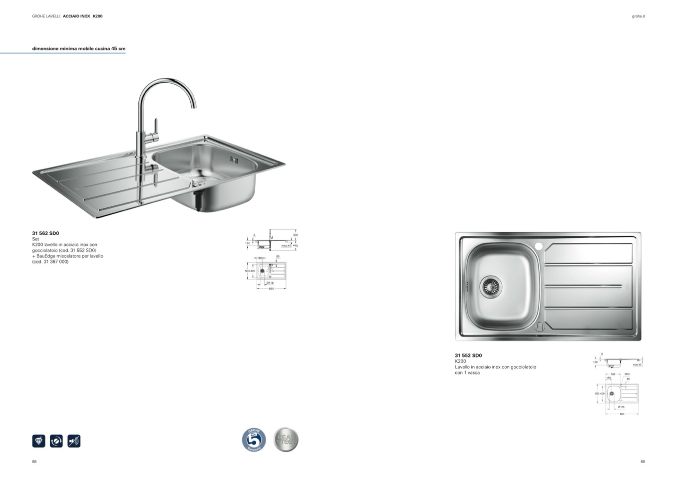 GROHE LAVELLI ACCIAIO INOX K200