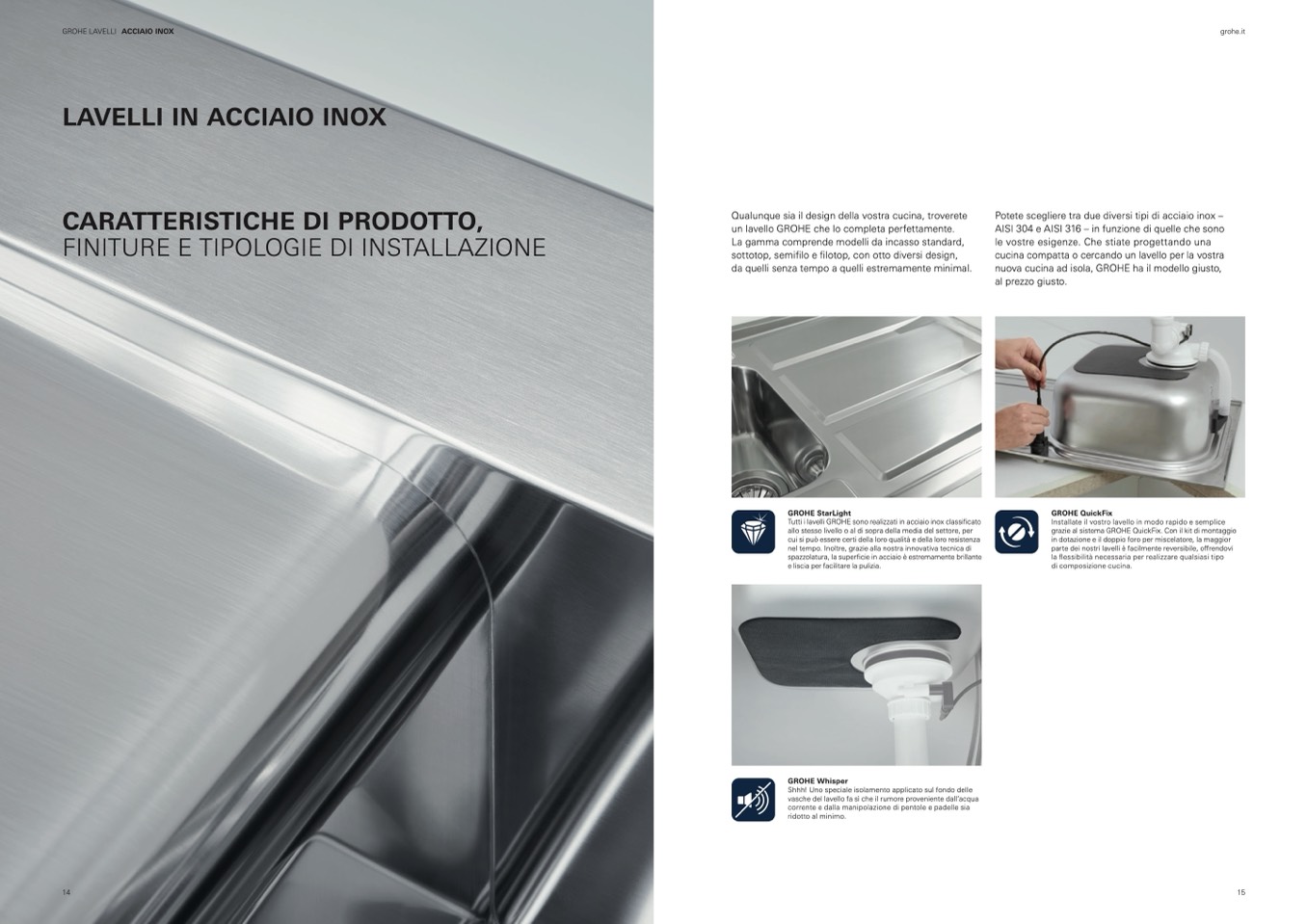 Tutti i lavelli GROHE sono realizzati in acciaio inox classificato
