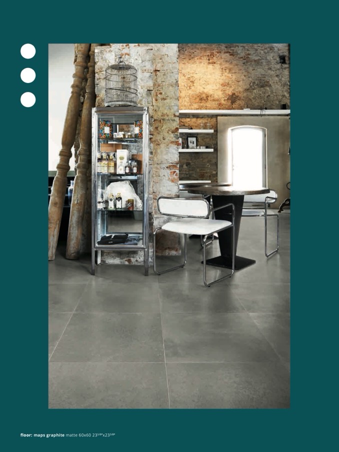 floor: maps graphite matte 60x60 235/8”x235/8”