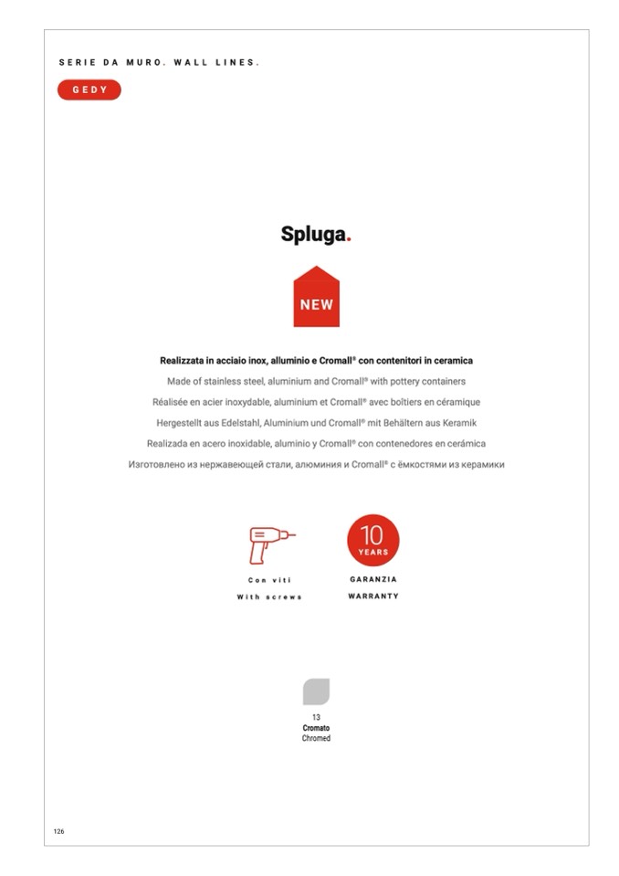 Realizzata in acciaio inox, alluminio e Cromall