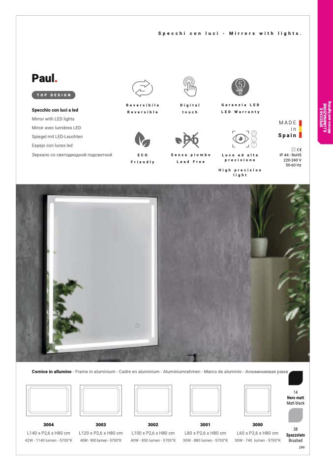 Specchio con luci a led