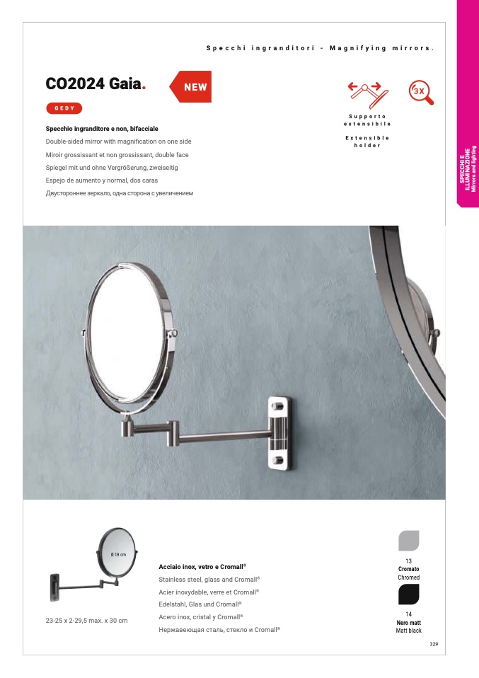 Specchio ingranditore e non, bifacciale