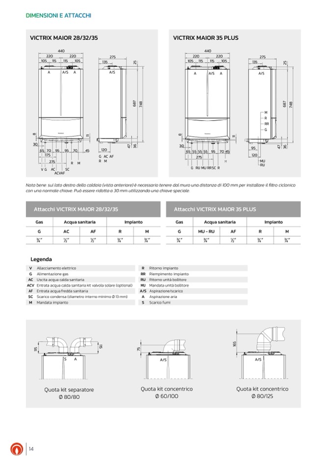Scarico condensa (diametro interno minimo Ø 13 mm)