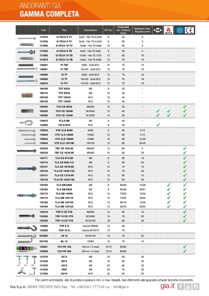 Per carichi ammissibili, dati di portata e spessori min. e max. fifissabili, fare riferimento alle apposite schede tecniche di prodotto.
