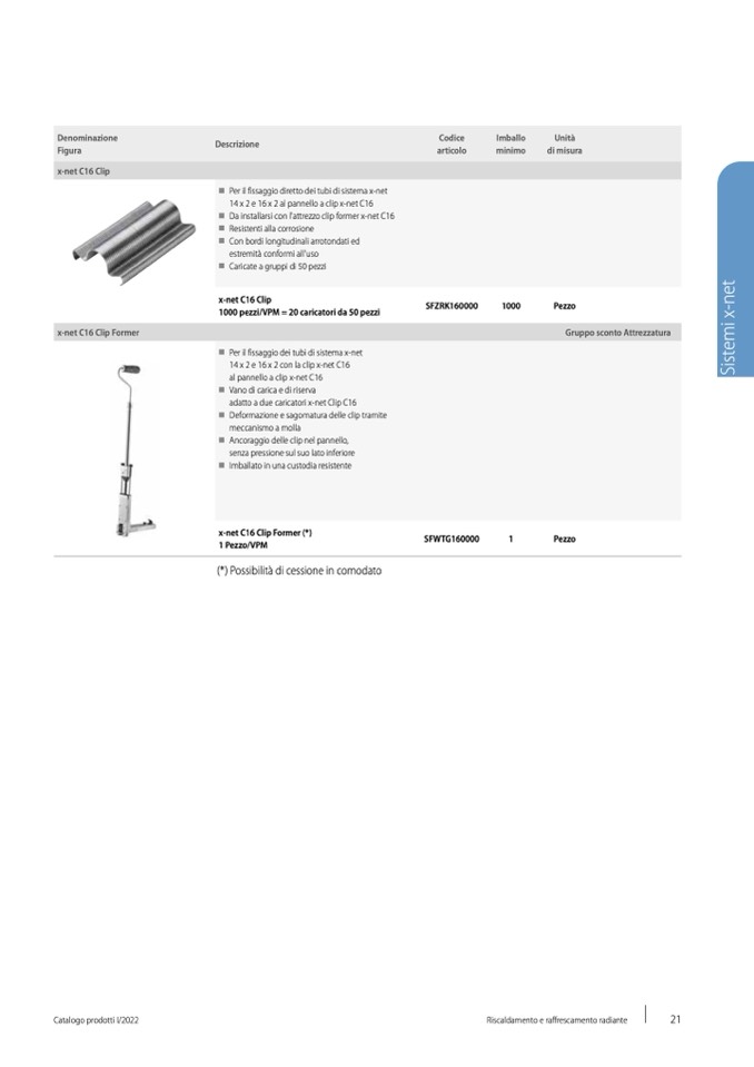 Da installarsi con l'attrezzo clip former x-net C16