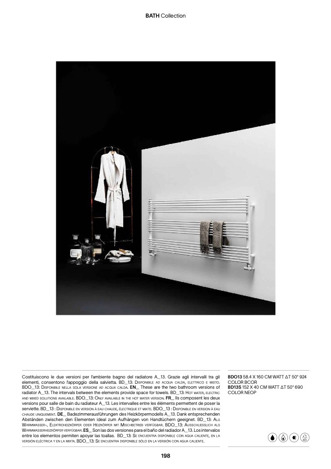 elementi, consentono l’appoggio della salvietta. bD_13: Disponibile aD acqua calDa, elettrico e misto.