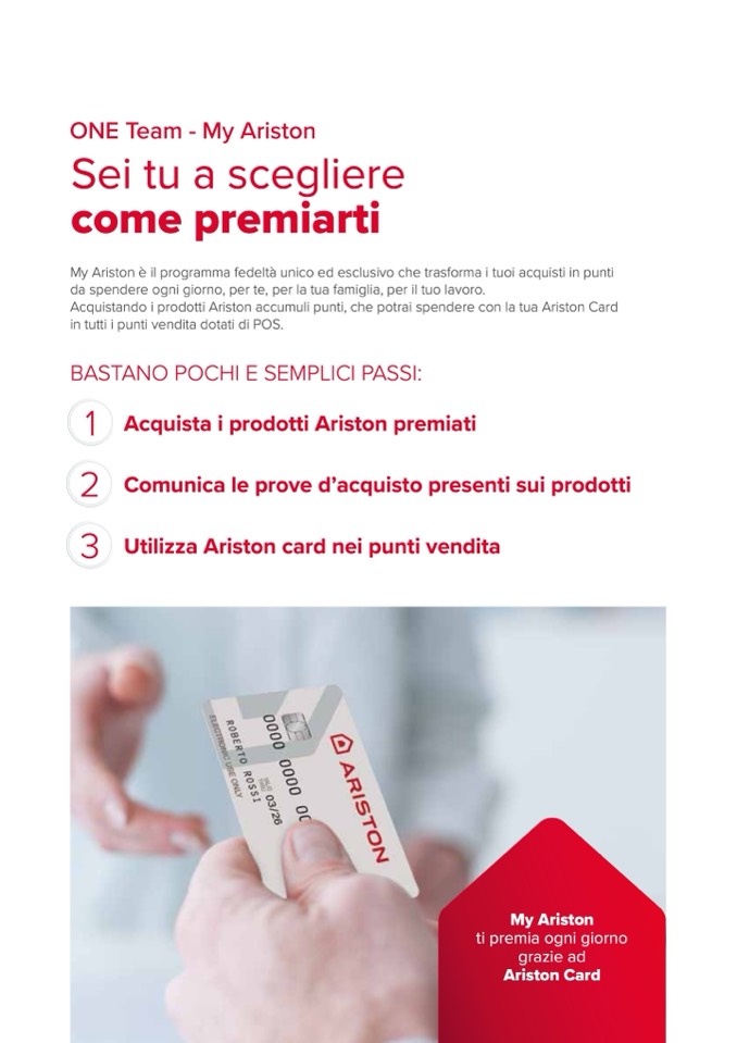 Acquistando i prodotti Ariston accumuli punti, che potrai spendere con la tua Ariston Card