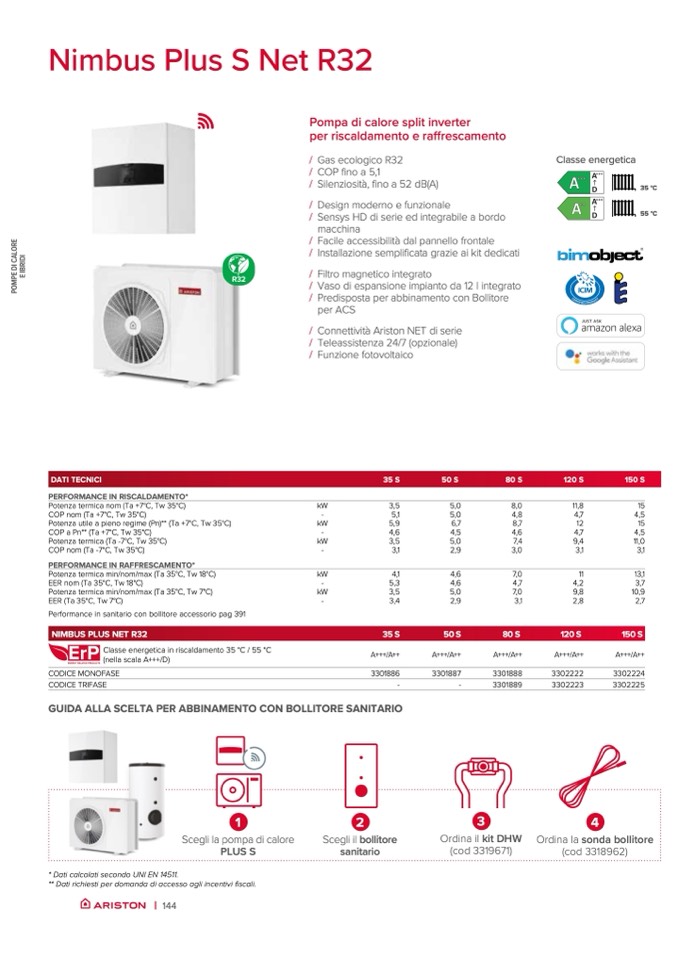 Classe energetica in riscaldamento 35 °C / 55 °C