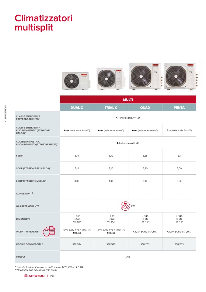 * Dati riferiti ad un sistema con unità interne ALYS R32 da 2,5 kW.