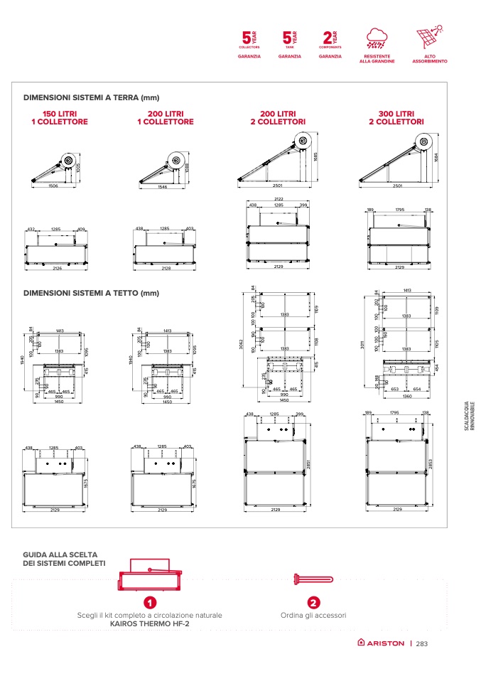 DIMENSIONI SISTEMI A TETTO (mm)