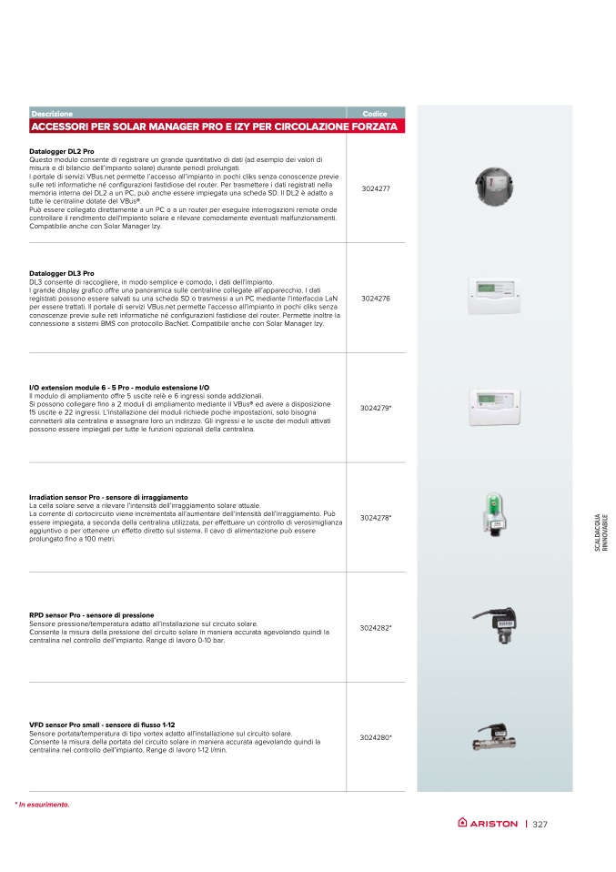 misura e di bilancio dell’impianto solare) durante periodi prolungati.