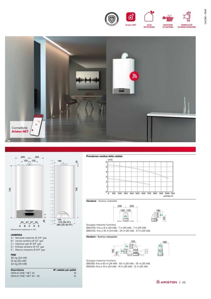 Ø80/125: fino a 33 m (24 kW) - 24 m (30 kW) - 27 m (35 kW)