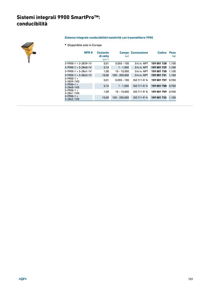 Sistema integrale conducibilità/resistività con trasmettitore 990