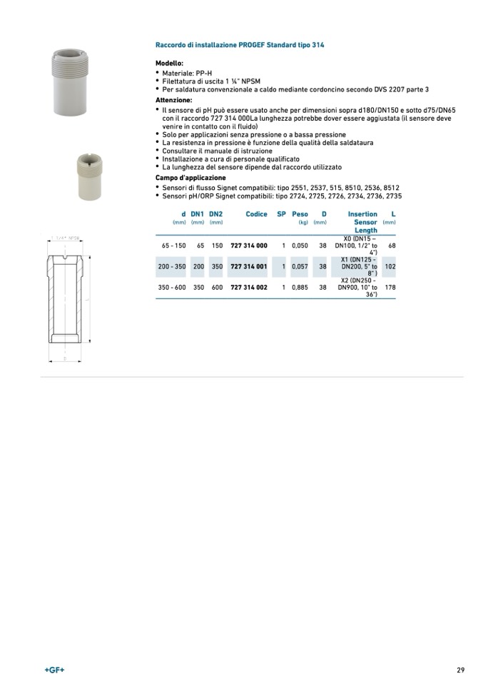 • Il sensore di pH può essere usato anche per dimensioni sopra d180/DN150 e sotto d75/DN65