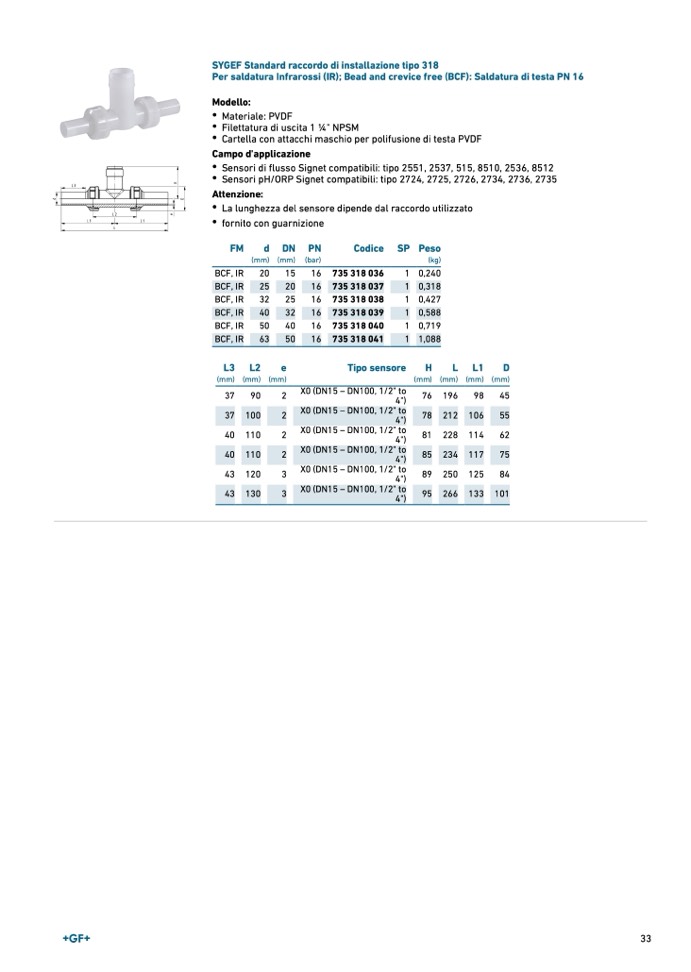 Per saldatura Infrarossi (IR); Bead and crevice free (BCF): Saldatura di testa PN 16