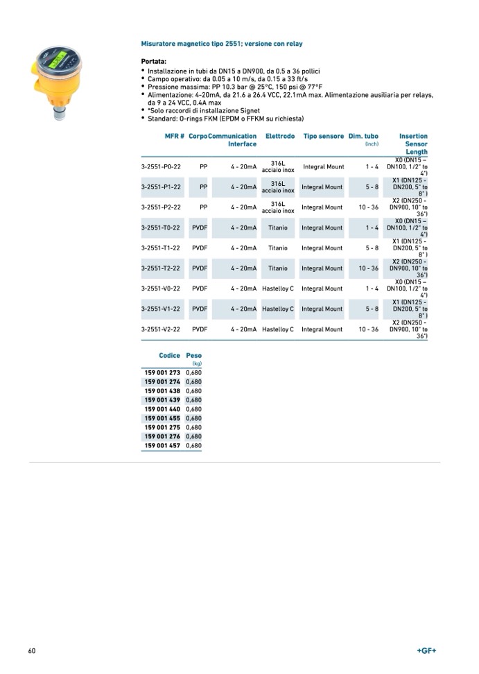Misuratore magnetico tipo 2551; versione con relay