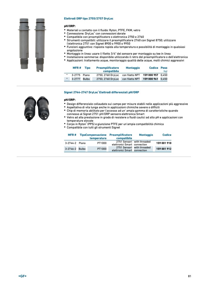 Signet 2744-2747 DryLoc® Elettrodi differenziali pH/OR