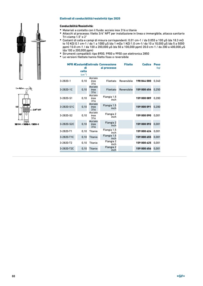 • Costanti di cella e campi di misura corrispondenti: 0.01 cm-1 / da 0.055 a 100 µS (da 18.3 m
