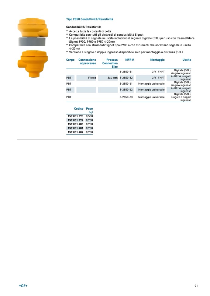 • Compatibile con strumenti Signet tipo 8900 o con strumenti che accettano segnali in uscita