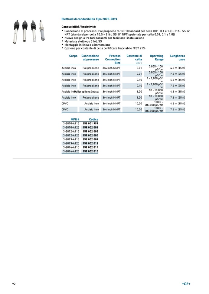 • Opzione per costante di cella certificata tracciabile NIST ±1%