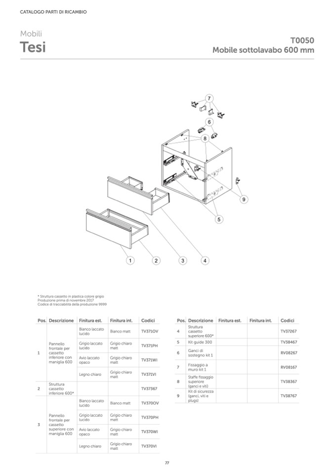 * Struttura cassetto in plastica colore grigio