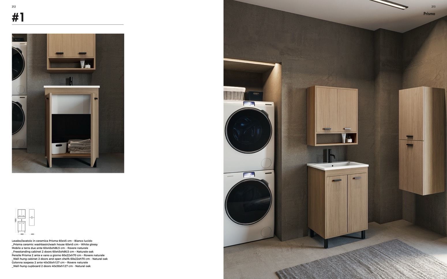 Lavabo/lavatoio in ceramica Prisma 60x45 cm – Bianco lucido
