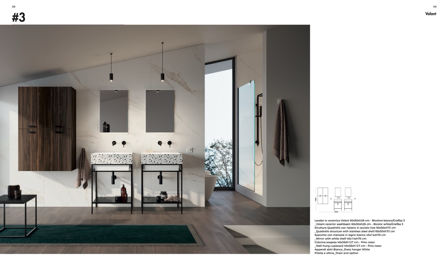 _Volant ceramic washbasin 60x50xh26 cm – Bicolor white/Grafika 3