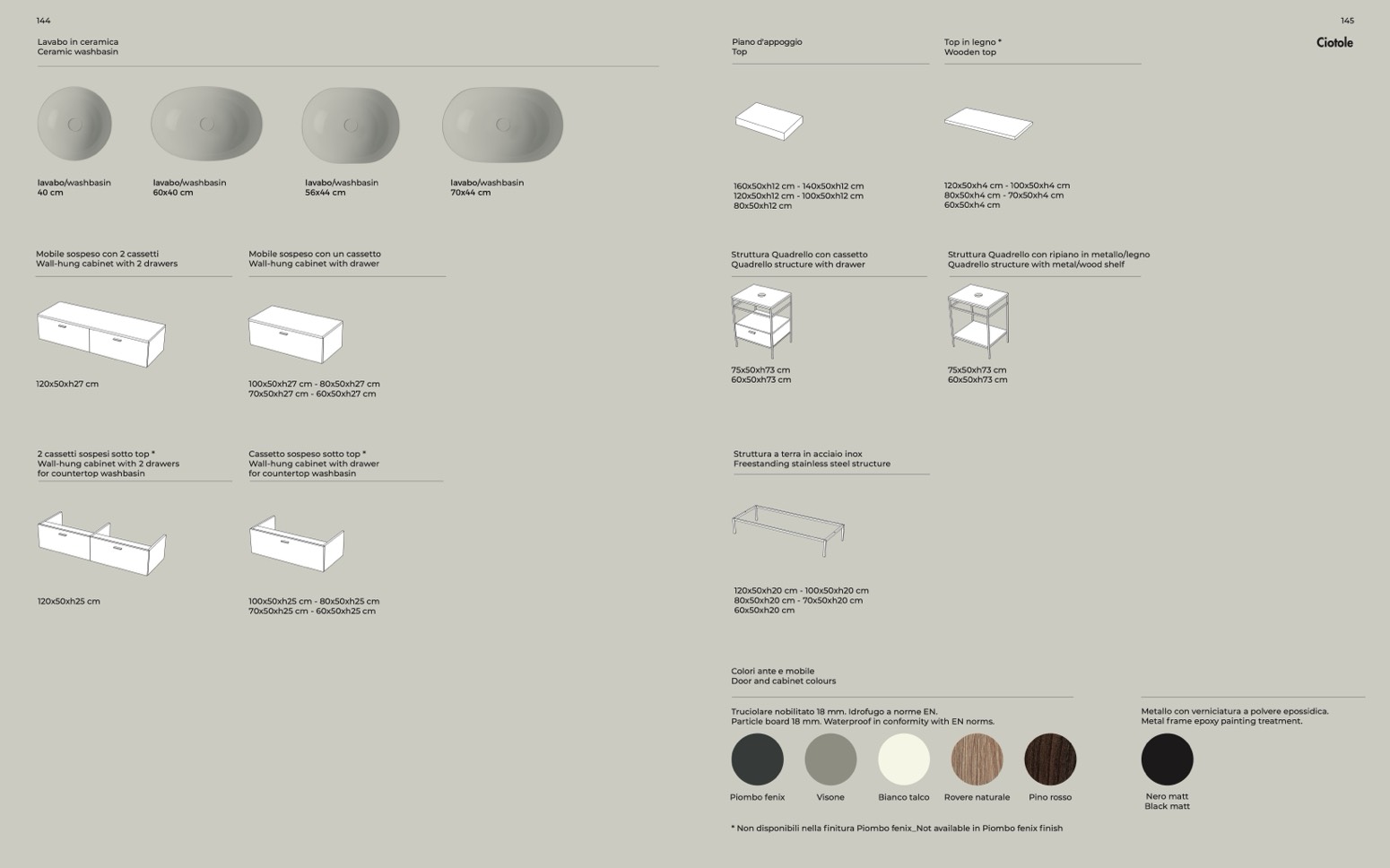 * Non disponibili nella finitura Piombo fenix_Not available in Piombo fenix finish