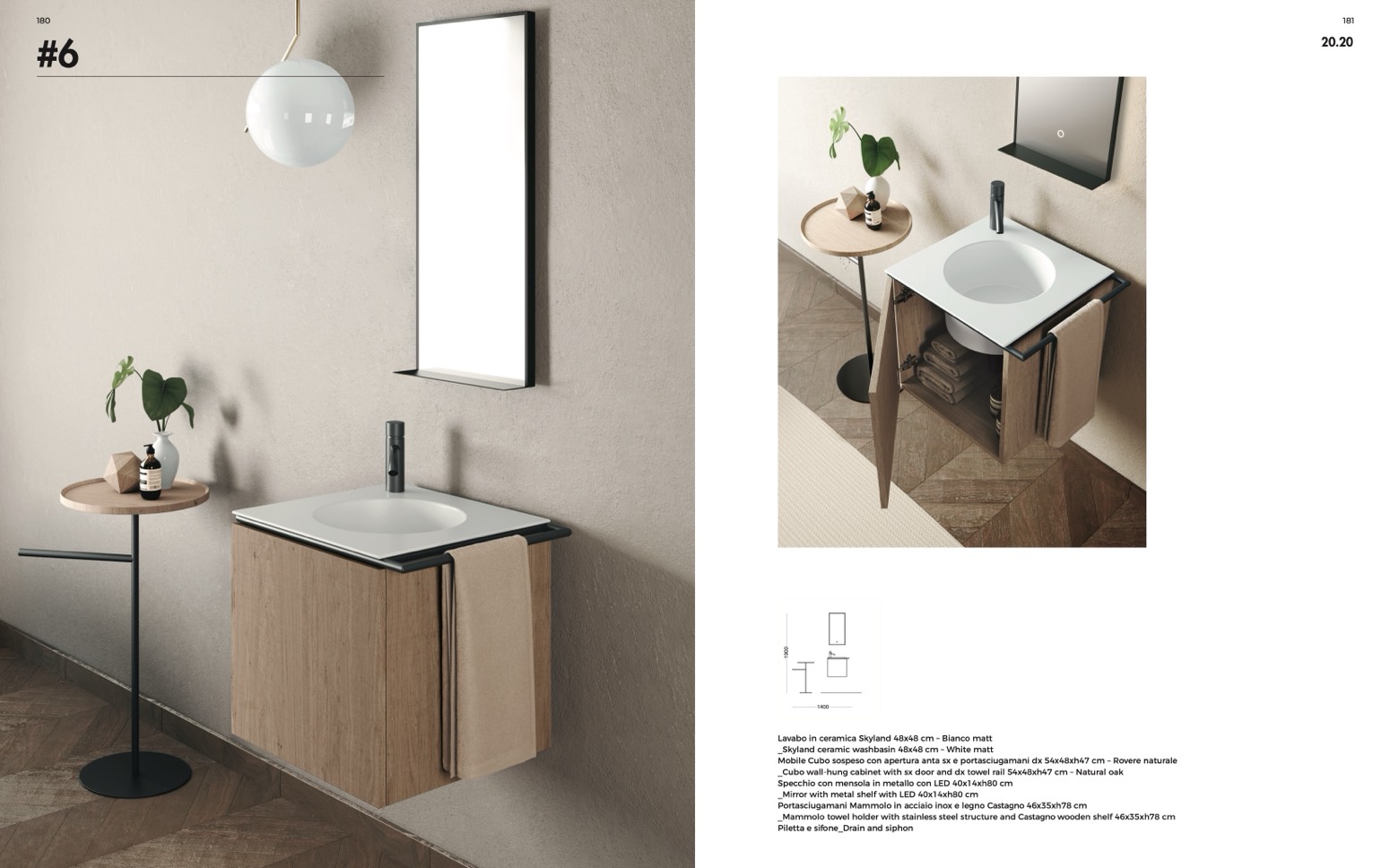 Mobile Cubo sospeso con apertura anta sx e portasciugamani dx 54x48xh47 cm – Rovere naturale