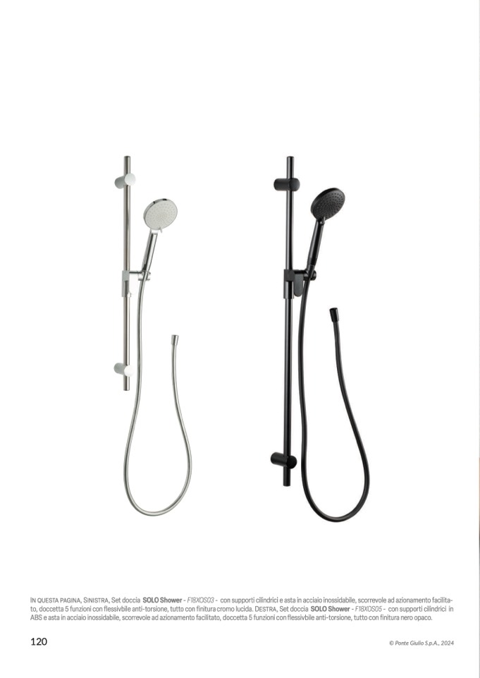In questa pagina, Sinistra, Set doccia SOLO Shower - F18XOS03 - con supporti cilindrici e asta in acciaio inossidabile, scorrevole ad azionamento facilita-