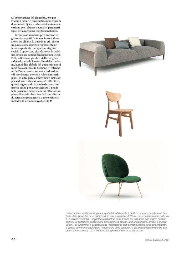 mente i 50 centimetri, (usale è una dimensione di 40 cm.), per una poltrona, invece, è di circa
