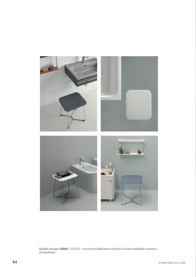 Sgabello da bagno OMNIA - G19UIS01 - con struttura delle base in tondino di acciaio inossidabile e seduta in