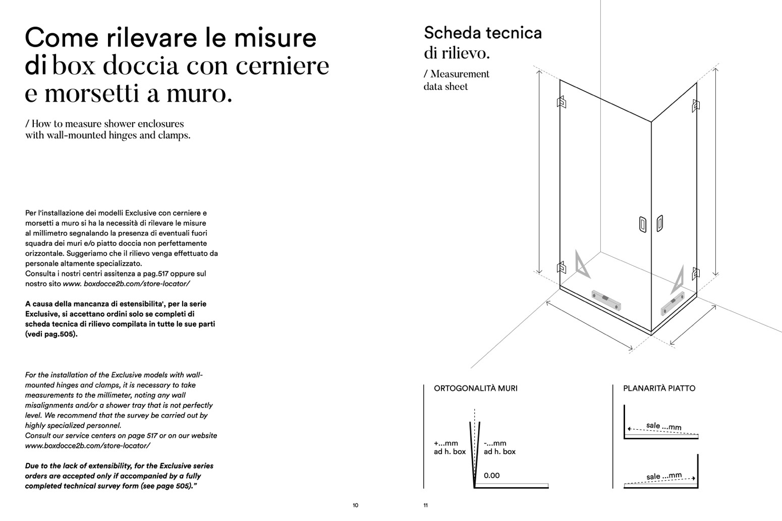 For the installation of the Exclusive models with wall-