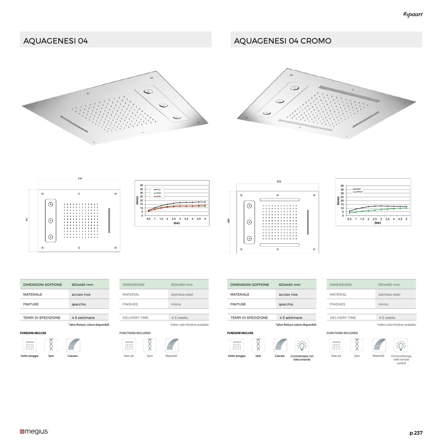 630×480 mm, multifunzione con getto pioggia, cascata e spin