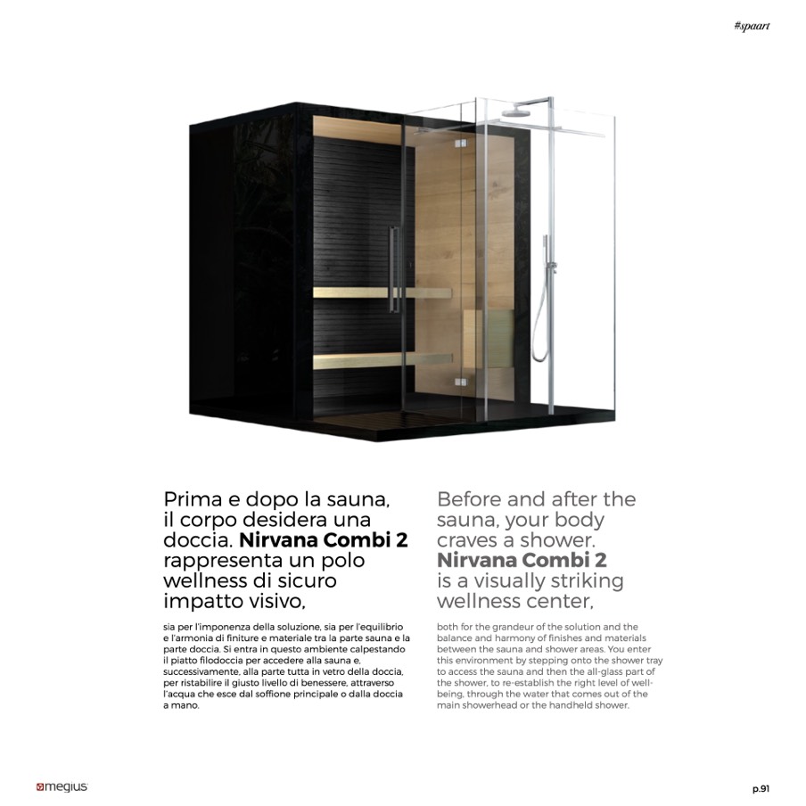 e l’armonia di finiture e materiale tra la parte sauna e la