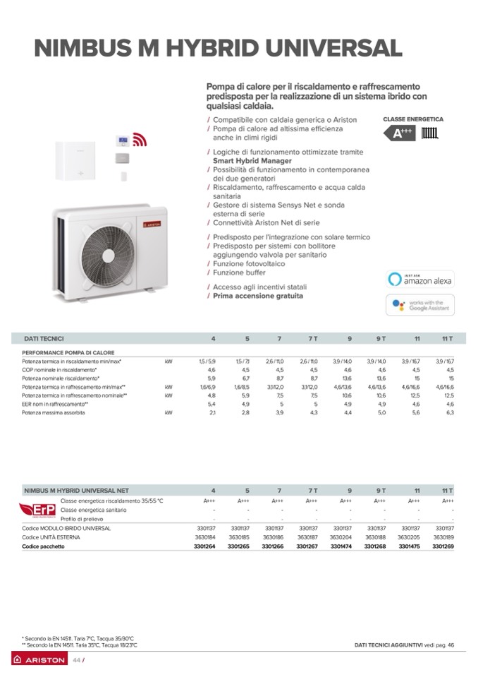* Secondo la EN 14511. Taria 7°C, Tacqua 35/30°C