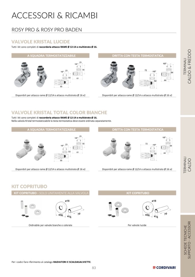 Per i codici fare riferimento al catalogo RADIATORI E SCALDASALVIETTE.
