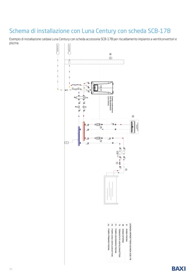 Esempio di installazione caldaia Luna Century con scheda accessoria SCB-17B per riscaldamento impianto a ventilconvettori e