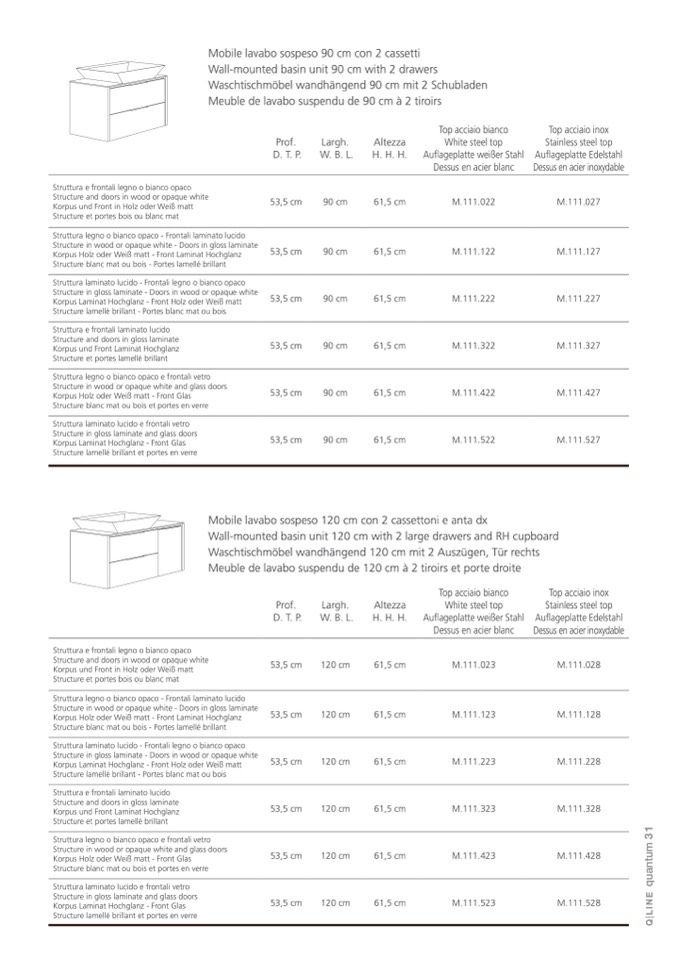 Mobile lavabo sospeso 90 cm con 2 cassetti
