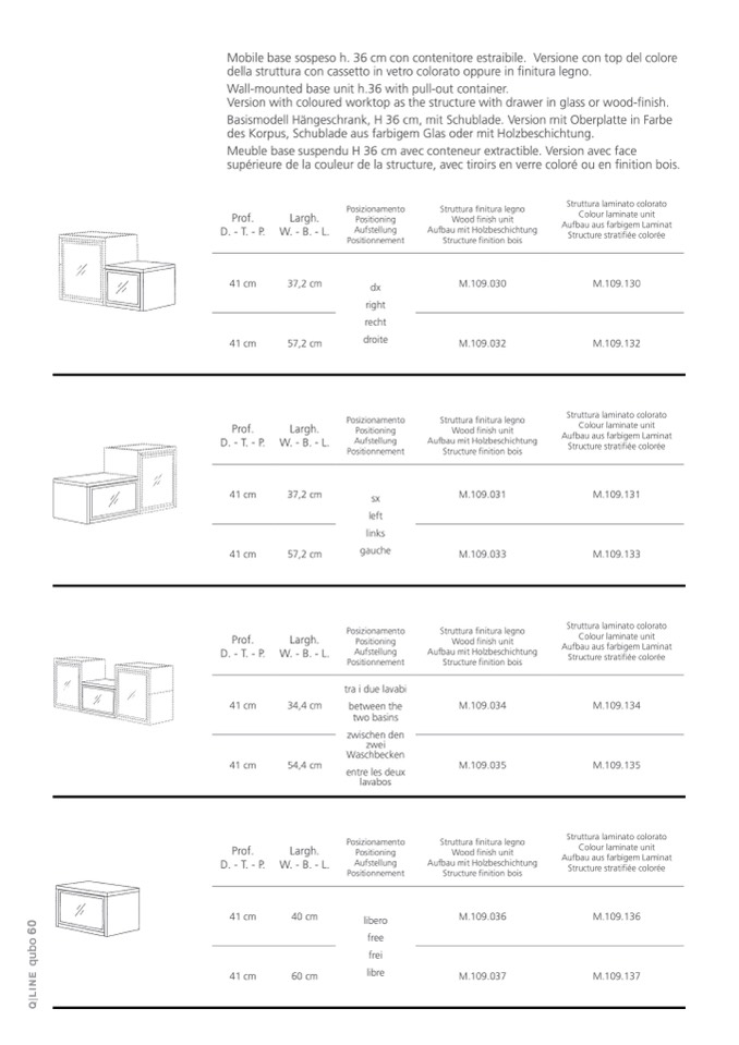 Mobile base sospeso h. 36 cm con contenitore estraibile. Versione con top del colore