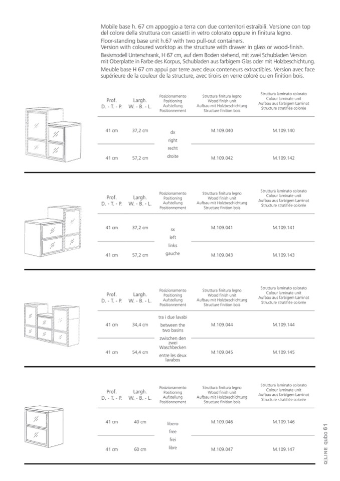 Mobile base h. 67 cm appoggio a terra con due contenitori estraibili. Versione con top