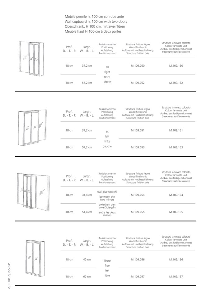 Wall cupboard h. 100 cm with two doors