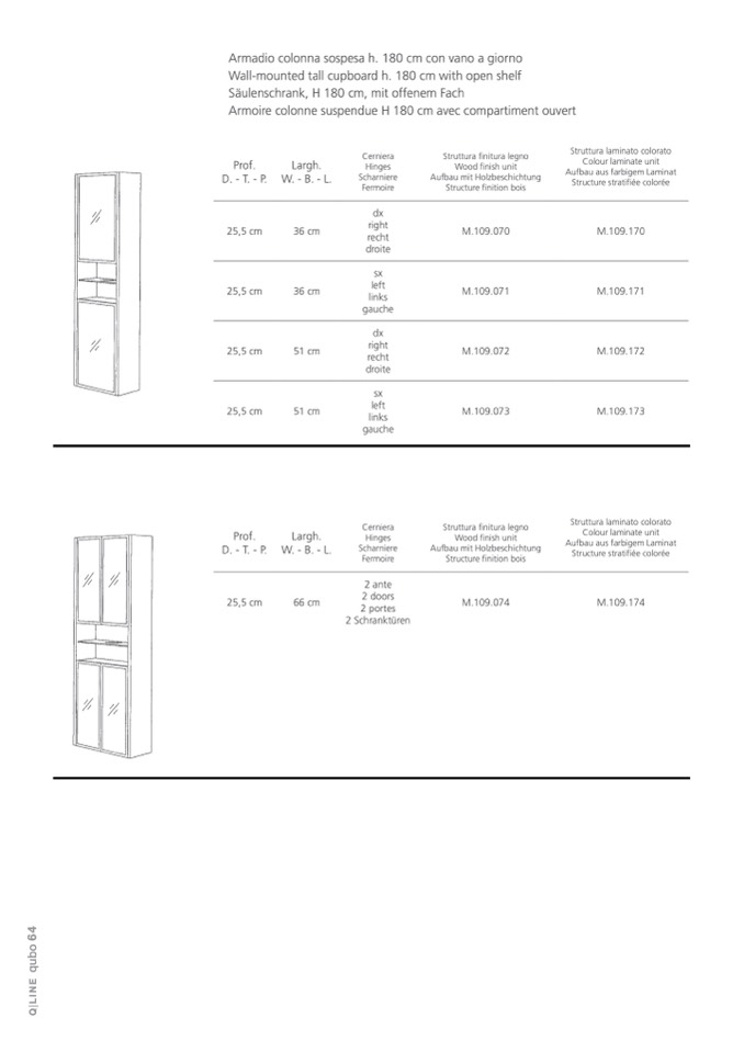Armadio colonna sospesa h. 180 cm con vano a giorno