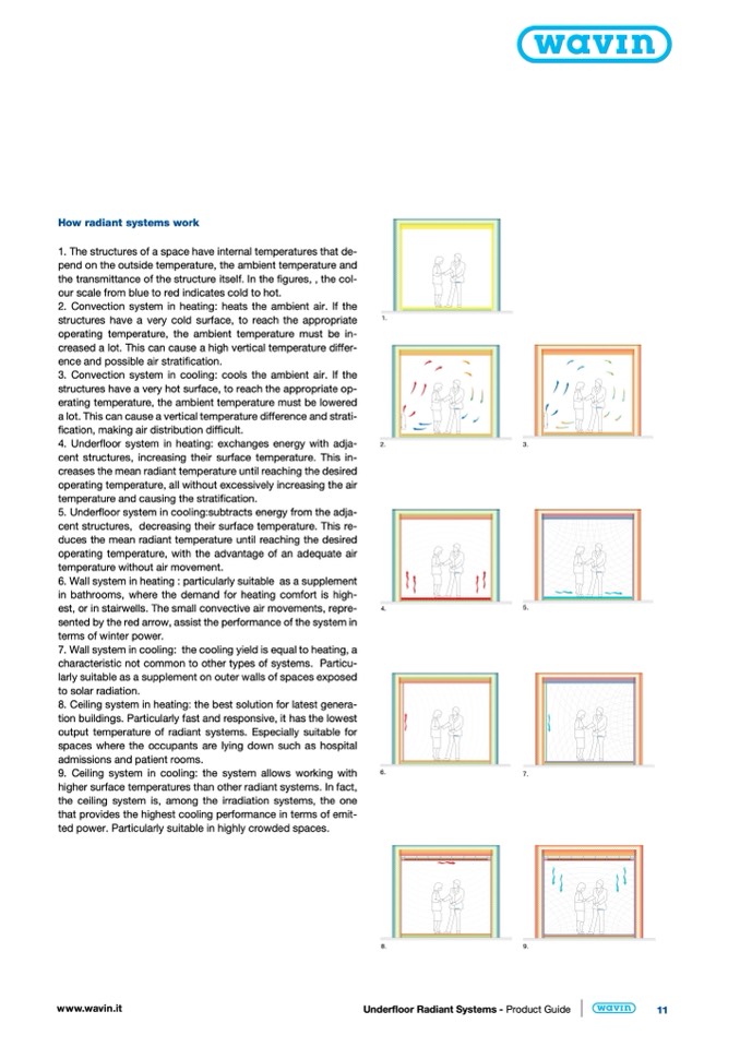 5. Underfloor system in cooling:subtracts energy from the adja-