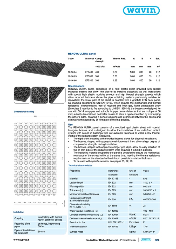 RENOVA ULTRA panel, composed of a rigid plastic sheet provided with special