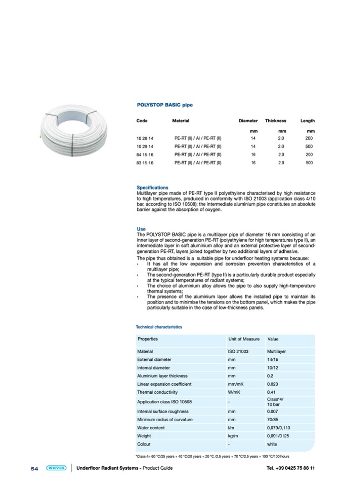 The POLYSTOP BASIC pipe is a multilayer pipe of diameter 16 mm consisting of an