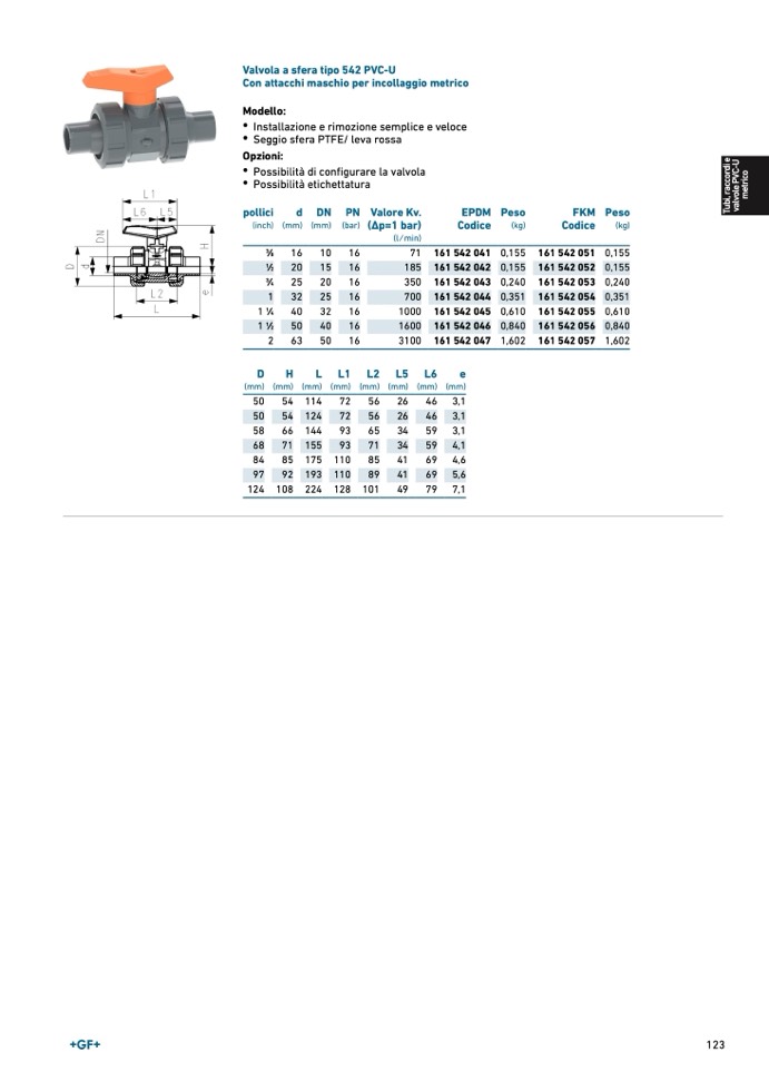 Valvola a sfera tipo 542 PVC-